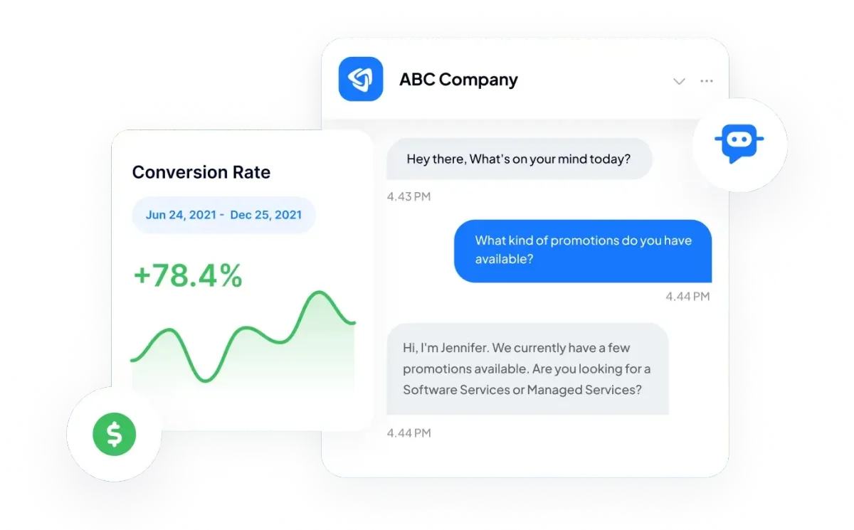 Be there for your customers, even when you’re not. Our AI Messaging Bots capture your missed calls and turns them into text conversations, so you can schedule appointments, answer questions, and close deals faster.
